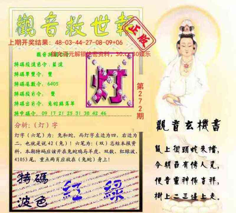272期 鼠上街头蛇来挡,今朝舀有傍人觅。便告灵神保吉祥,树上二三边上走。 解:鼠上街头蛇来挡,鼠上街头,明肖鼠蛇,今朝舀有傍人觅,舀有傍人觅,解猴狗。便告灵神保吉祥,灵神,解龙猴。保吉祥,吉肖兔龙蛇马羊鸡。树上二三边上走,二十三羊,树上边上走解猴 九肖:猴龙蛇鼠狗羊兔鸡马 |